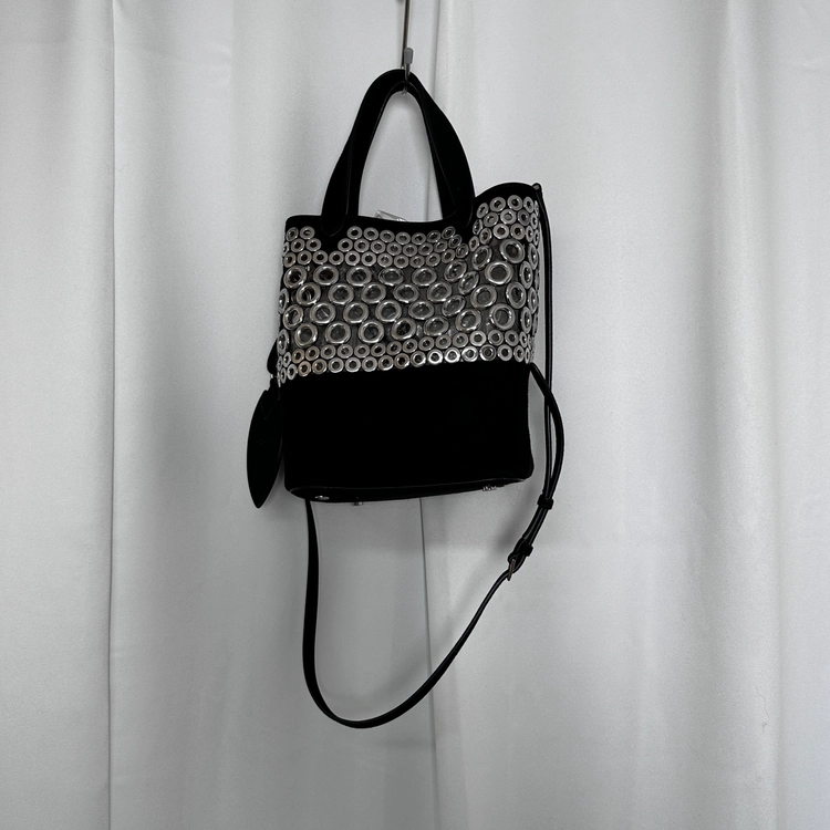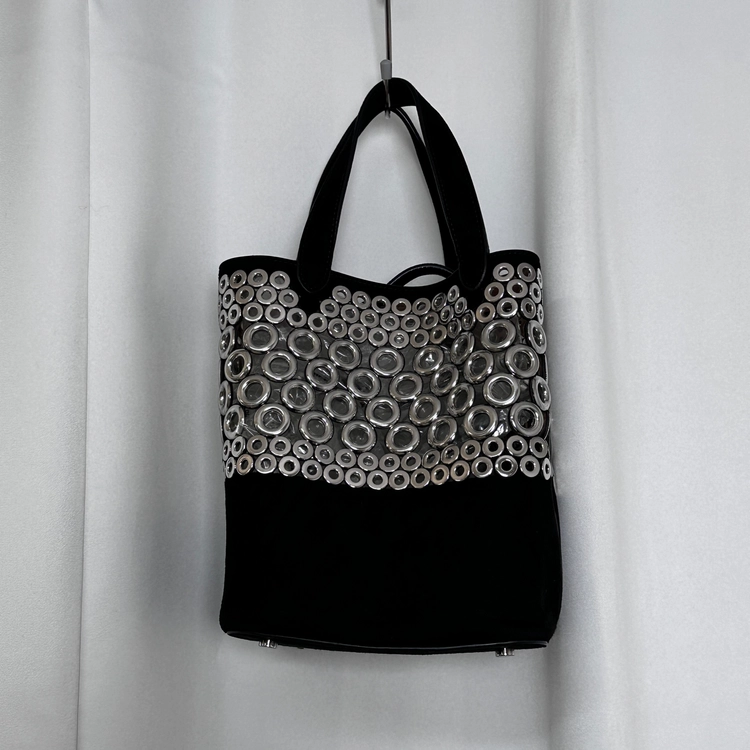 블랙 레더 아일렛 핸드백(거울및 스트랩 포함)