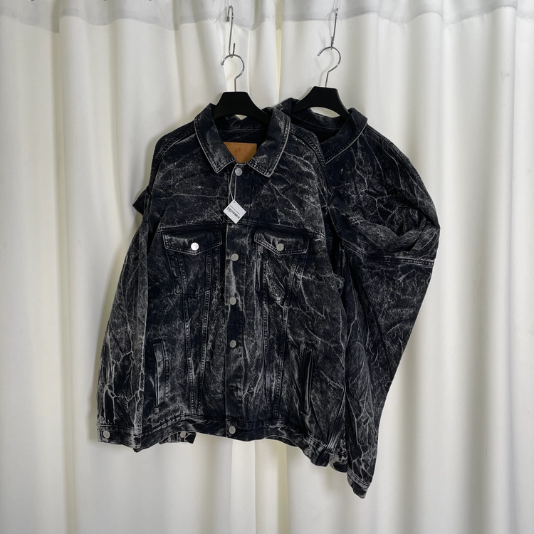 블랙 화이트 크랙 레이어드 오버사이즈 데님자켓