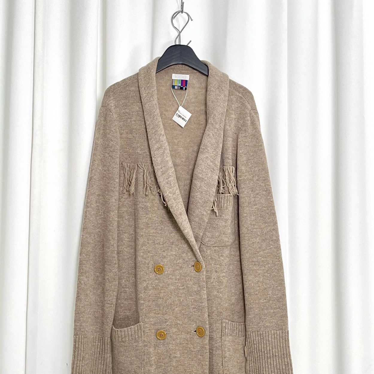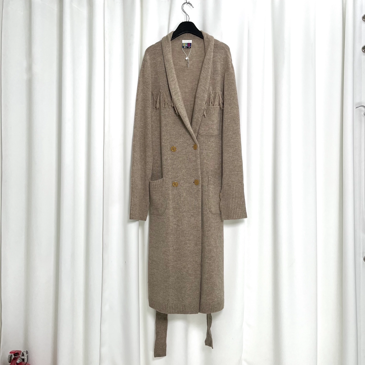 Carmel Colour Thick Wool Knit Coat Cardigan W 3 Pockets