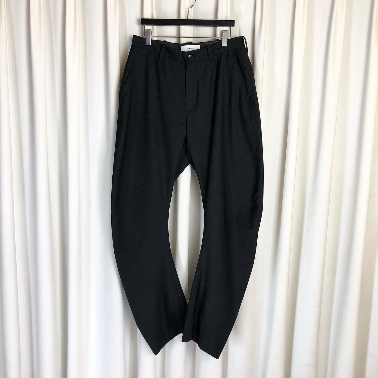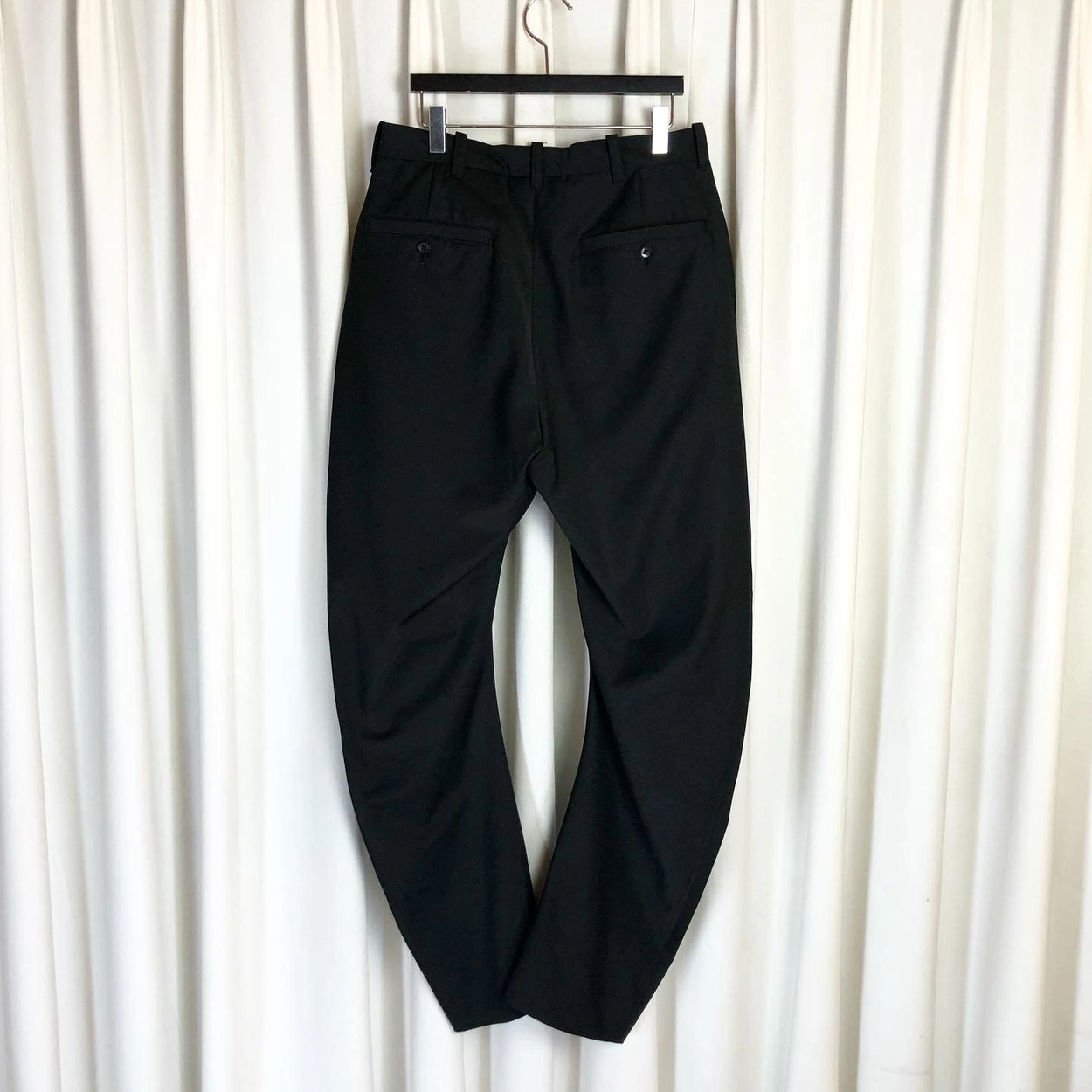 BLACK WOOL CURVED LEGS WIDE FIT PANTS