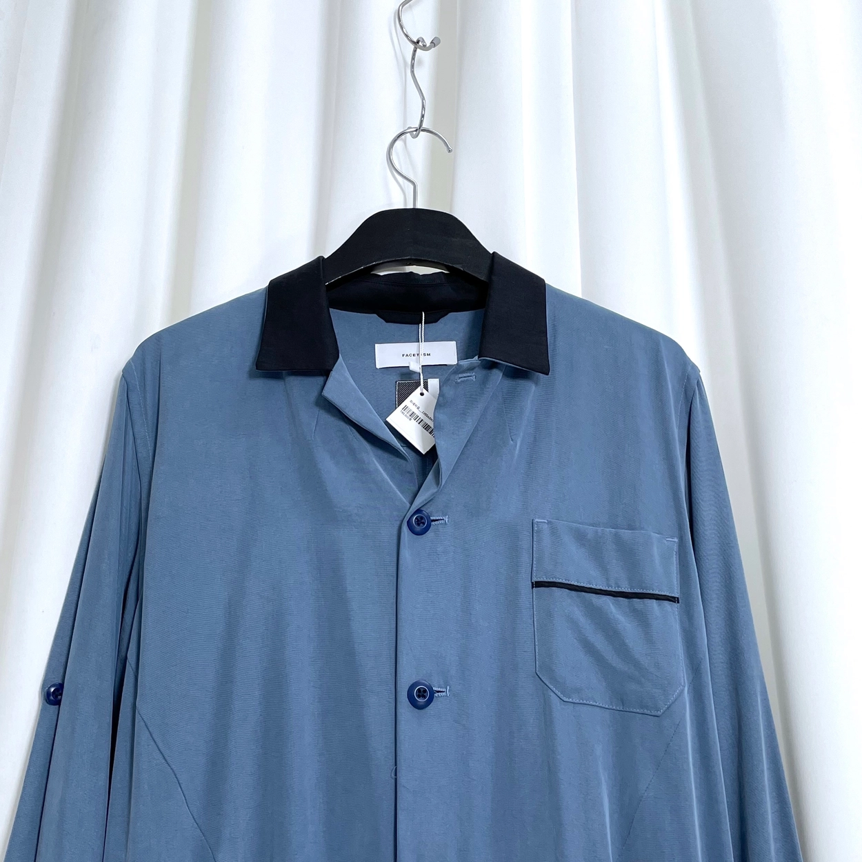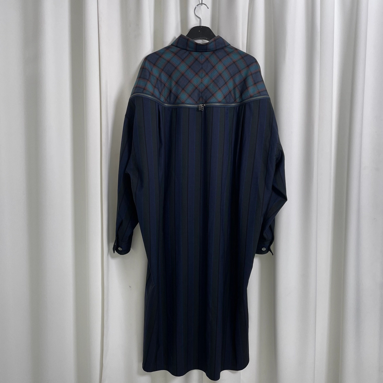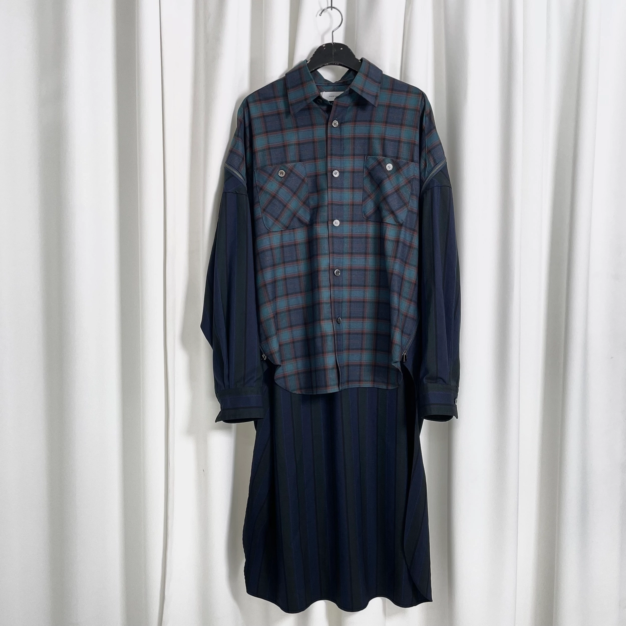 21AW 네이비체크 하이-로우지퍼 도킹셔츠