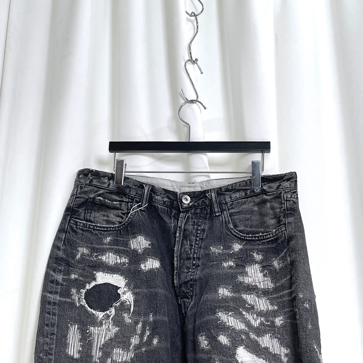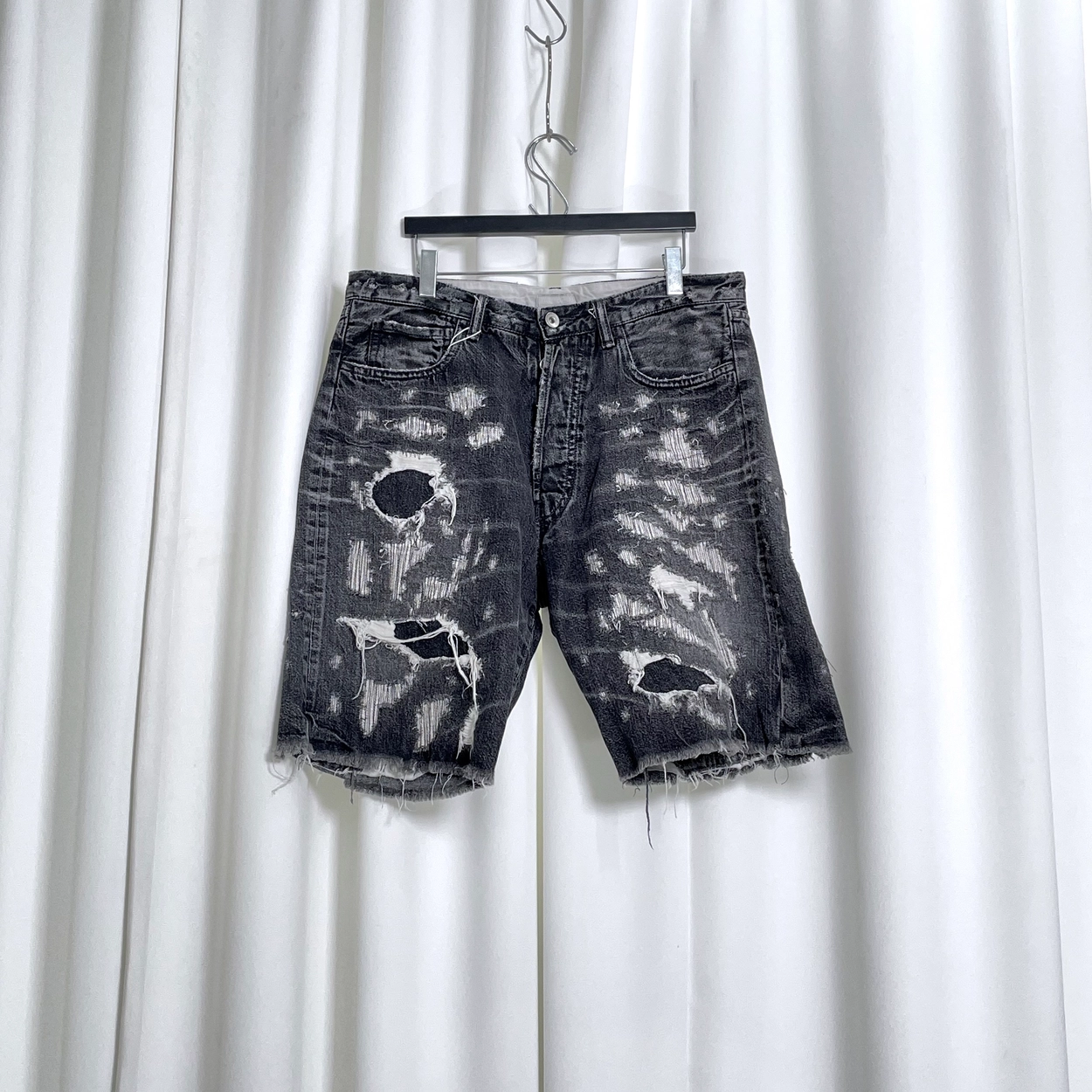 블랙 데미지 데님 쇼츠