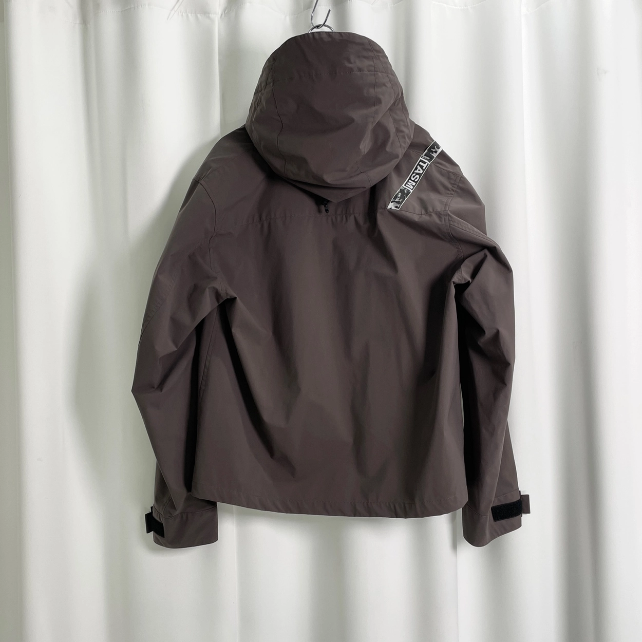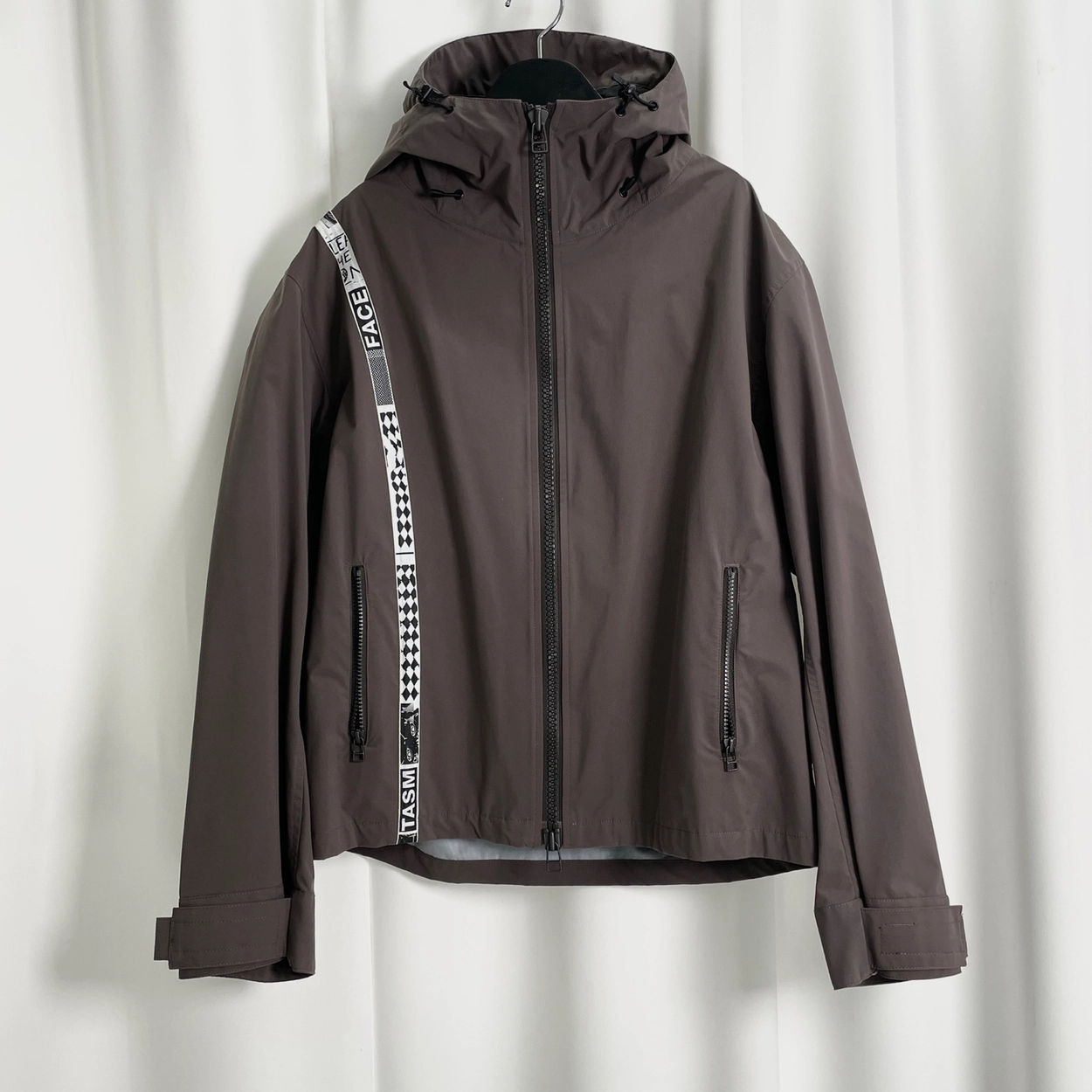 다크 브라운 화이트 라인 디테일 후드 집업 자켓