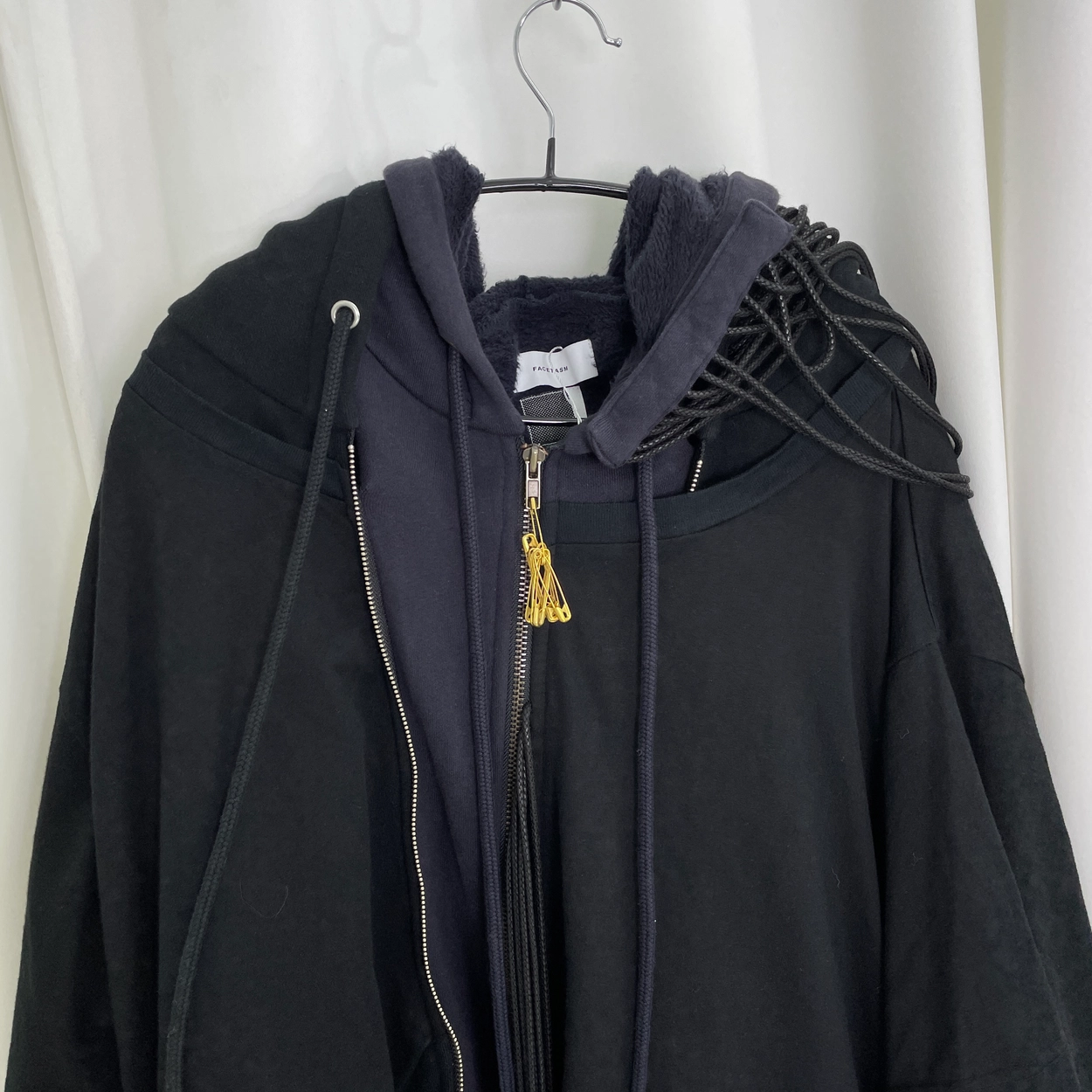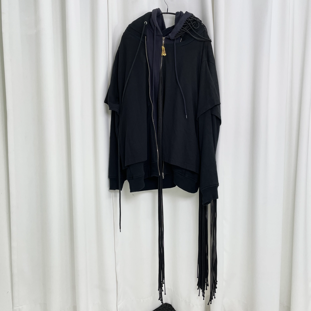 블랙 로프디테일 레이어드 후드집업