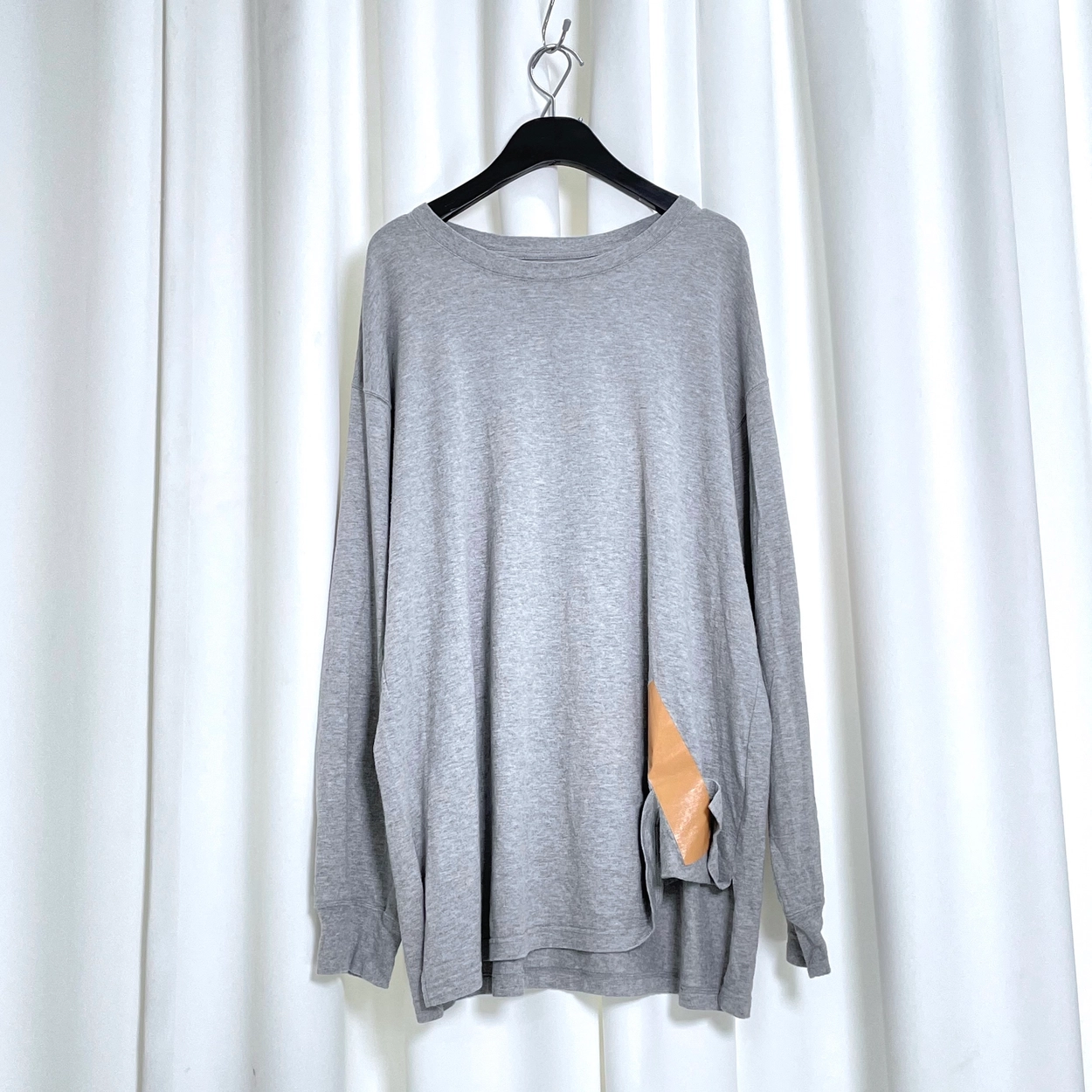 그레이 테이프 디테일 롱슬리브 티