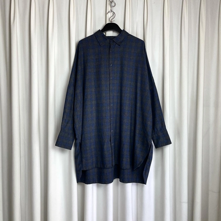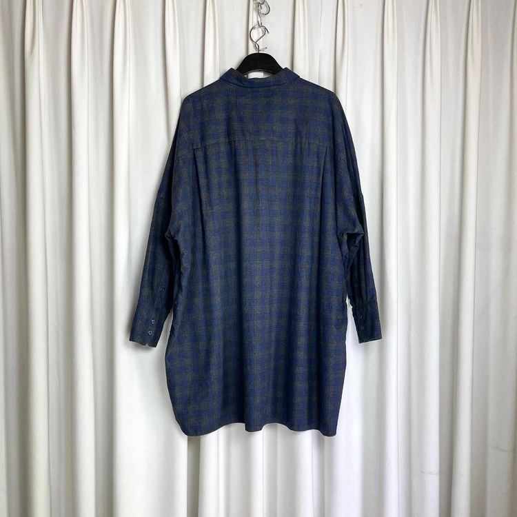 GREY & BLUE WOOL CHECK SUPER OVERSIZED SHIRT