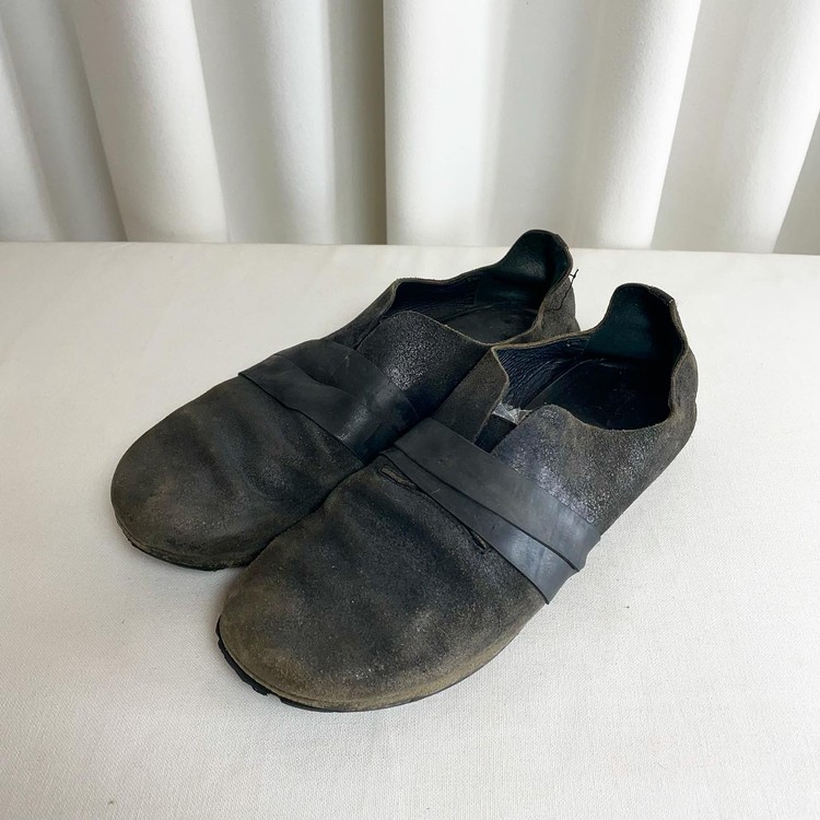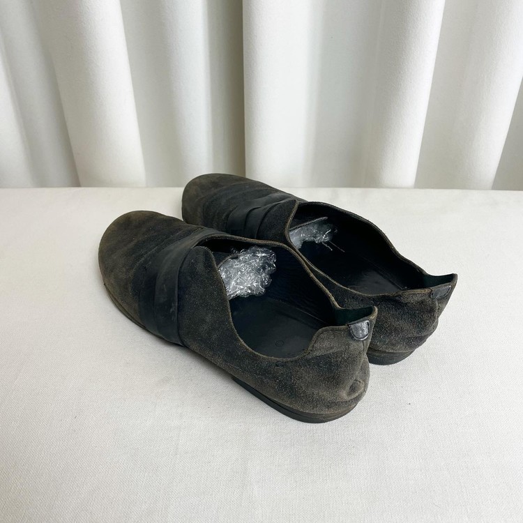 Black rubber band detail suede flat shoes