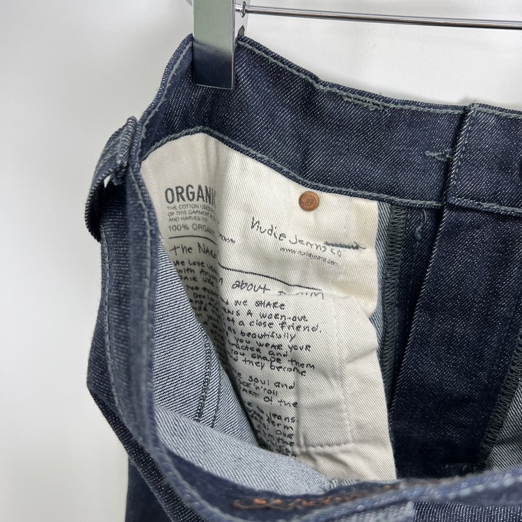 WAIST 35cm, LENGTH 104cm, RISE 23.5cm, THIGH 22.5cm, INSEAM 77cm, HEM 16cm 22.5