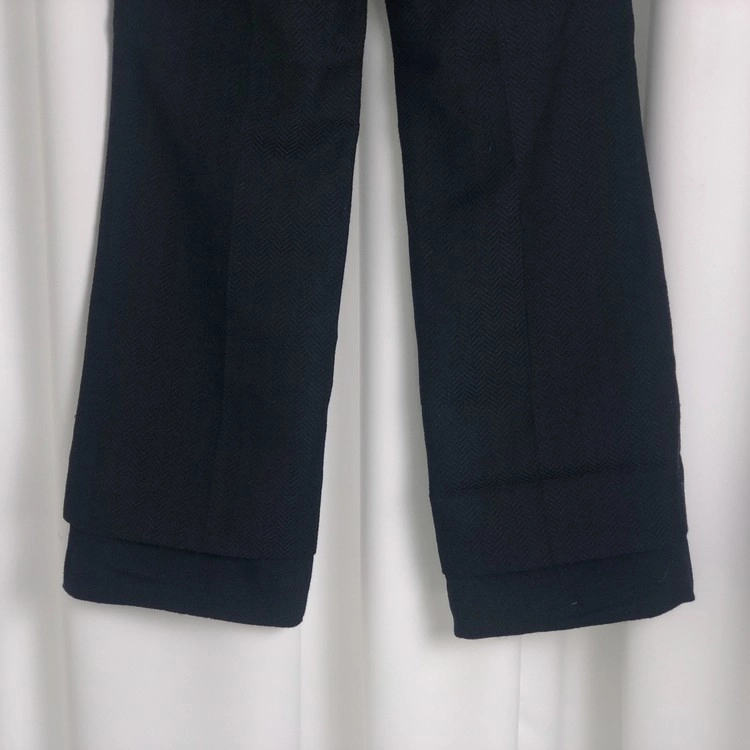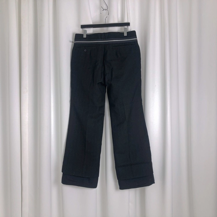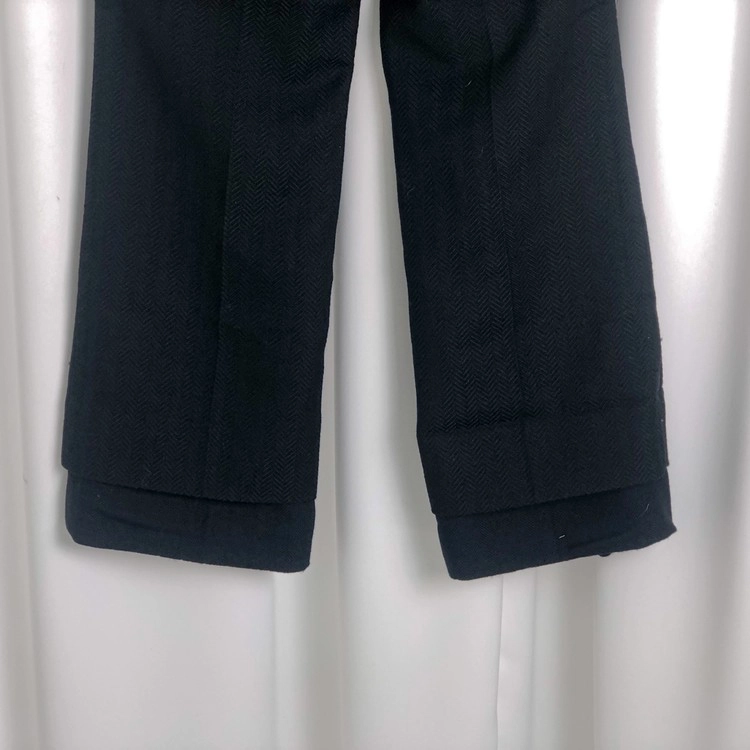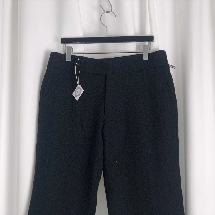 BLACK THICK HARRINGBONE WOOL DOUBLE LAYERED DETACHABLE PANTS W WAIST ZIP DETAIL