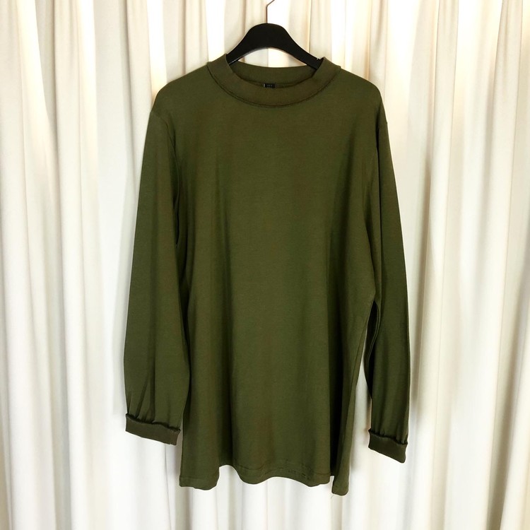 Khaki reversed ribs oversized long sleeves top