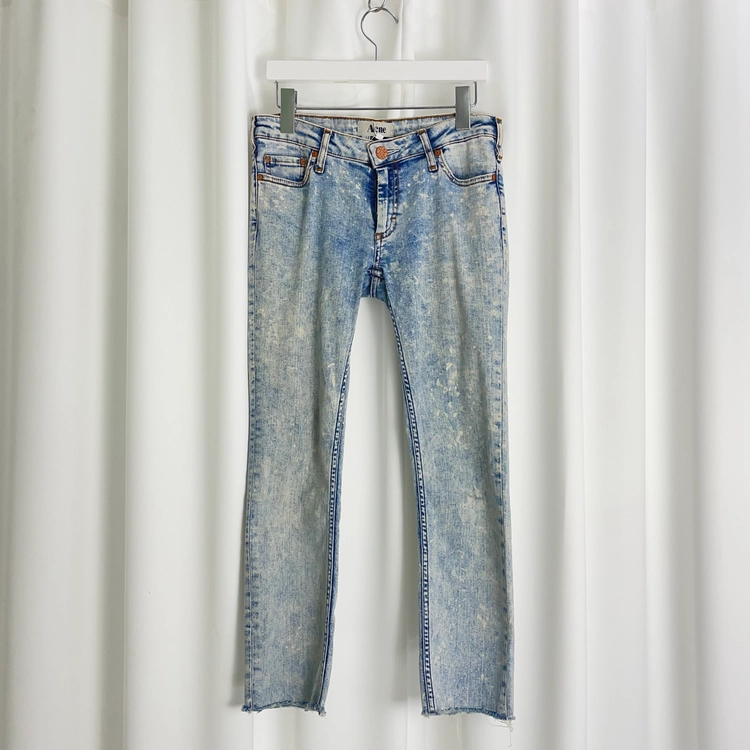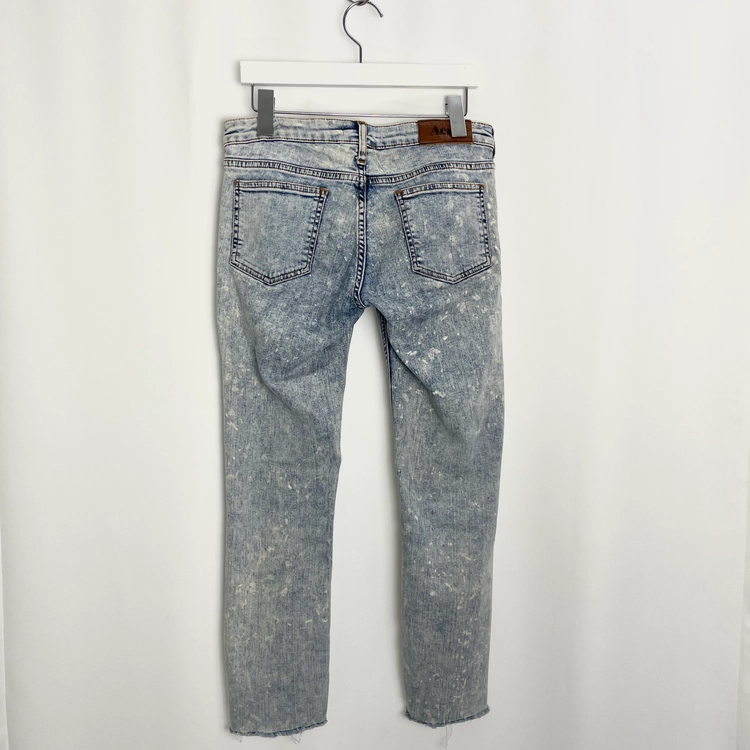 Sky blue washed jeans w bleached spreaded