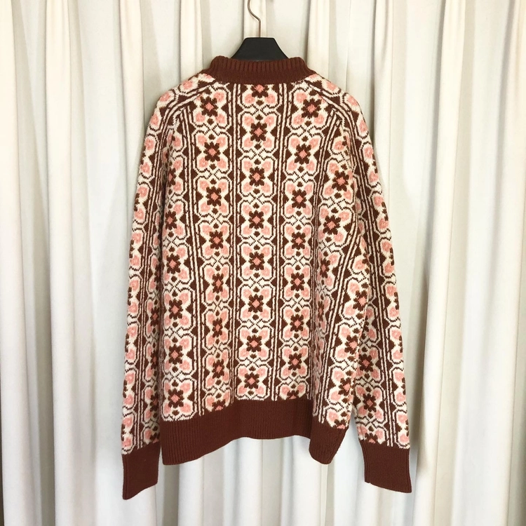 Pink + brown floral heavy wool knit top