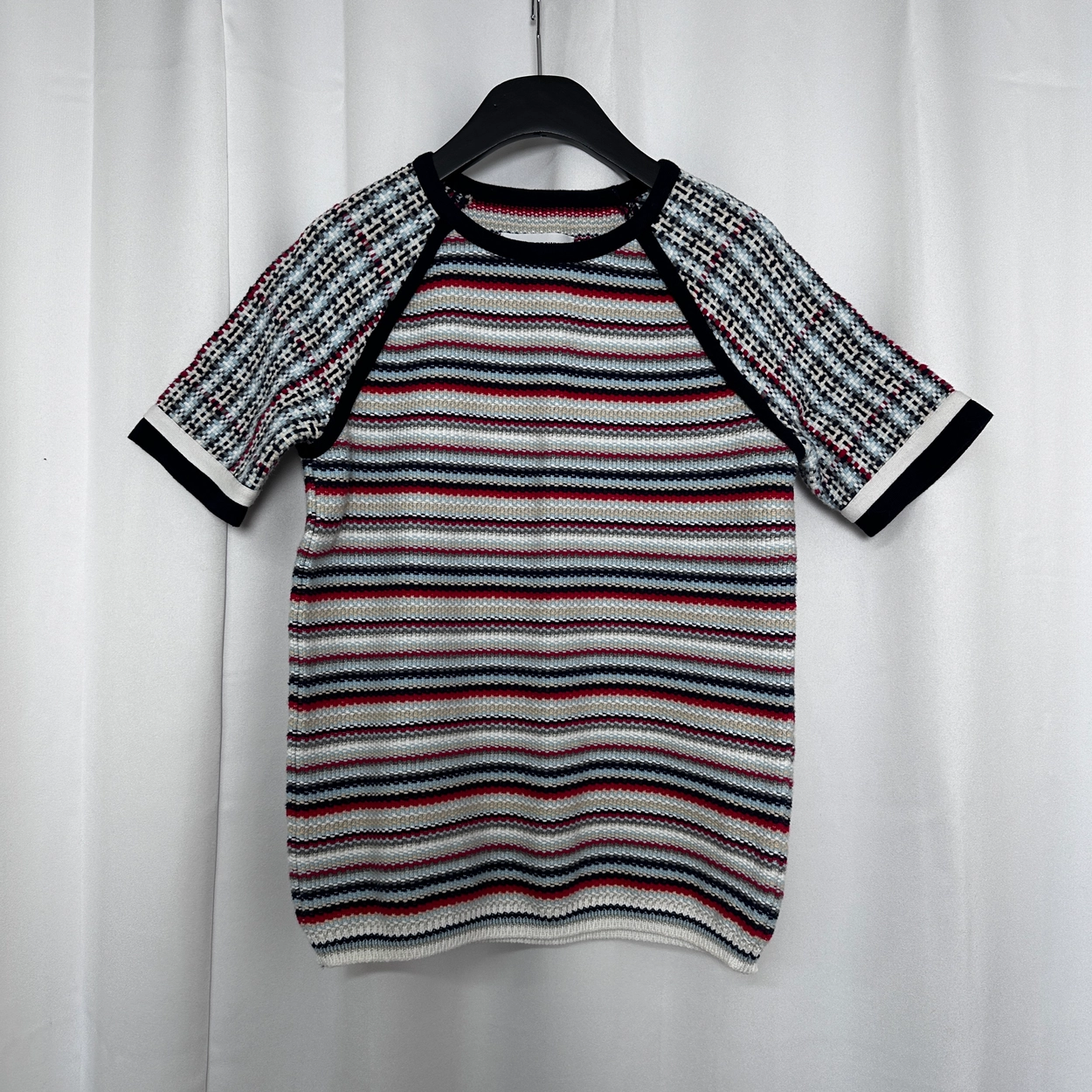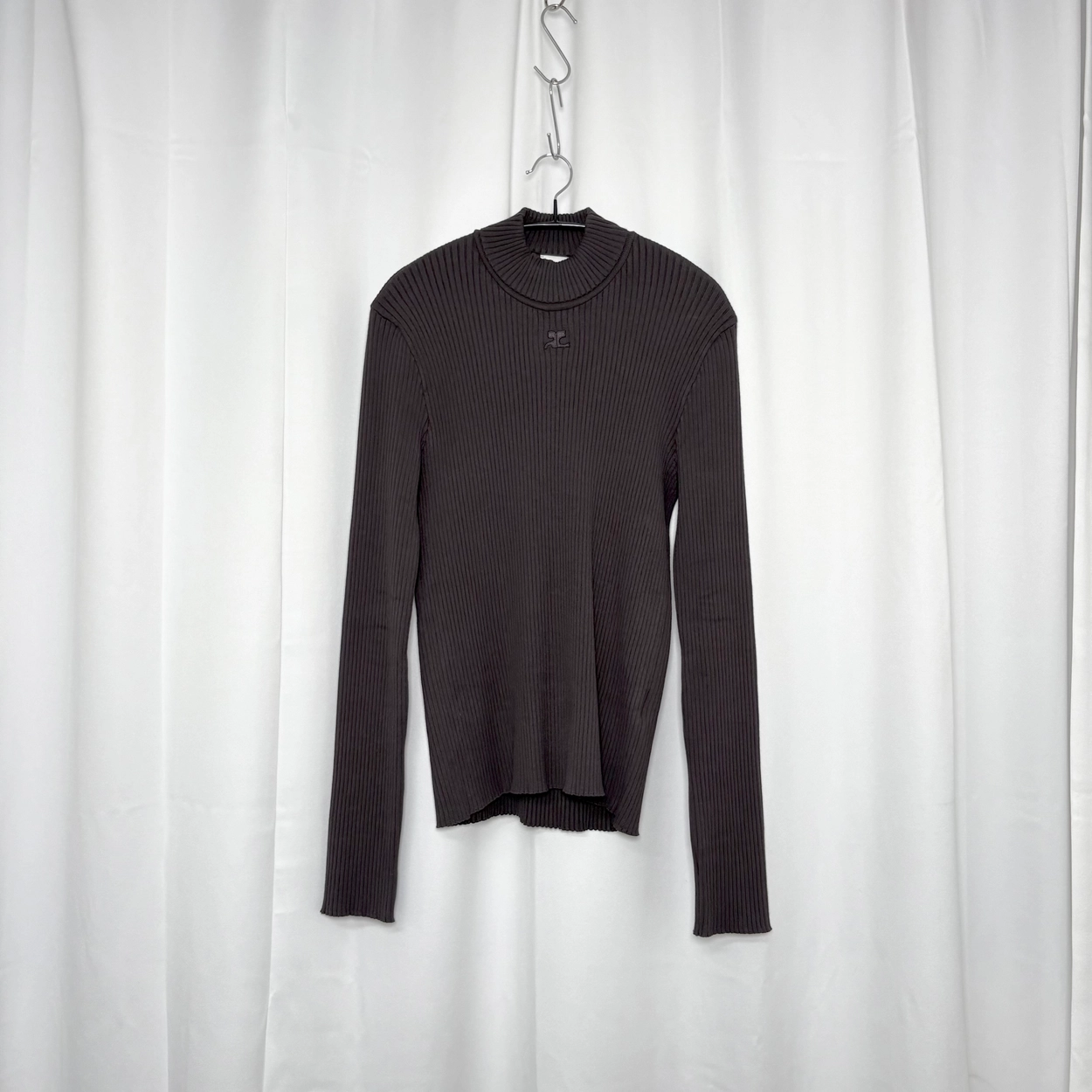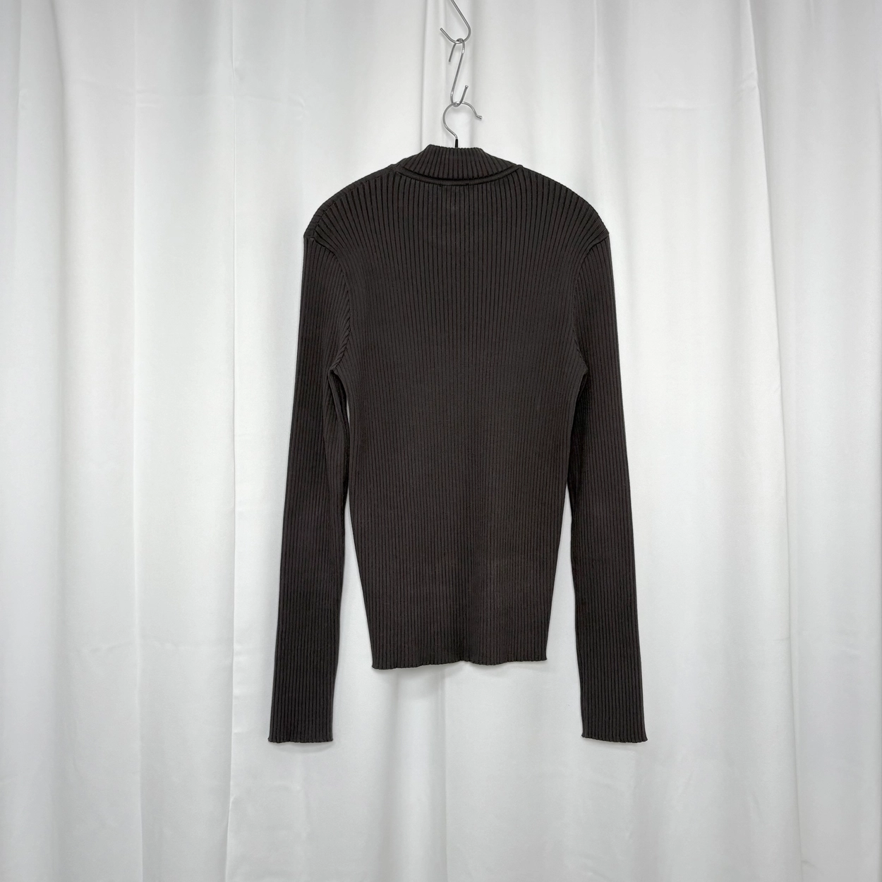 Brown viscose strips knited turtleneck top.